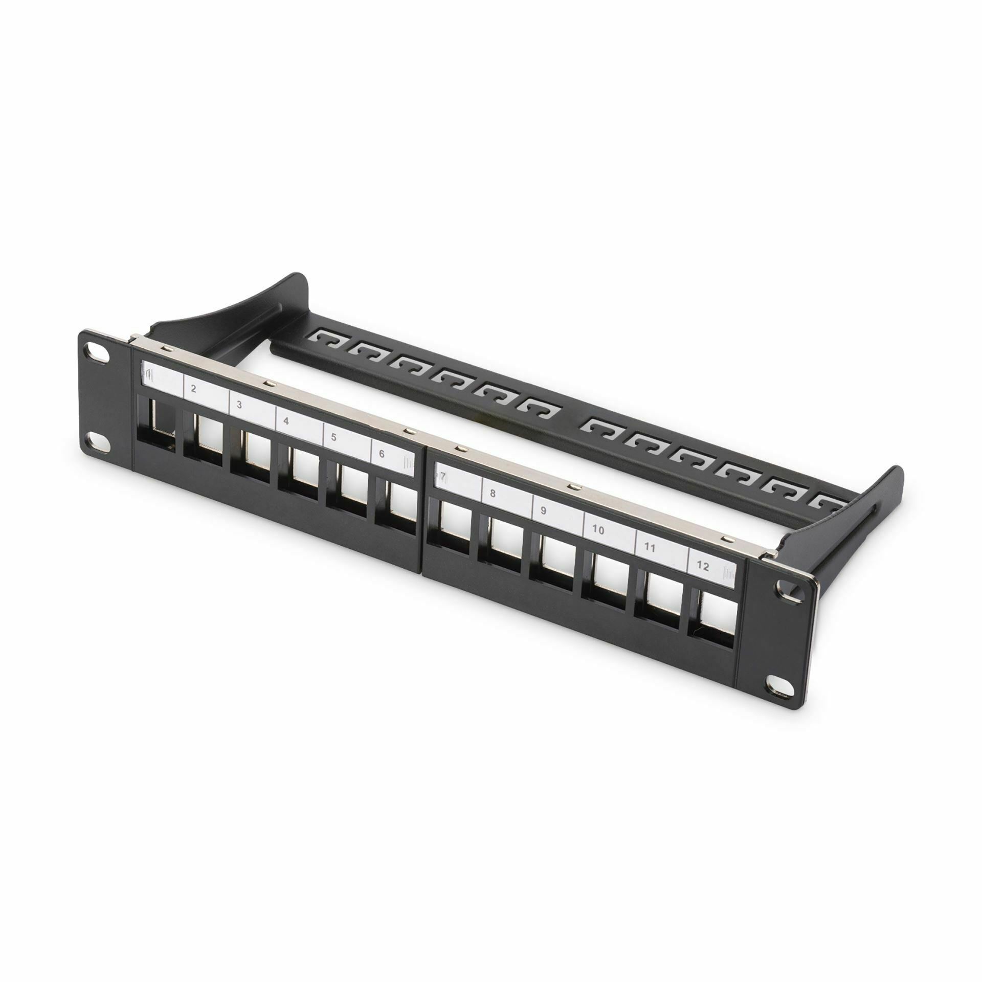 Digitus modularni panel za montažo v komunikacijsko omaro, višina 1U, barva črna, 12-portni.