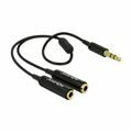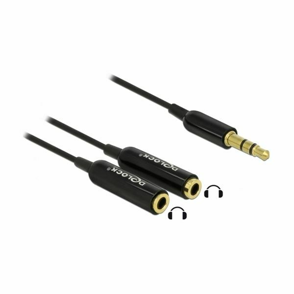 Delock avdio razdelilec iz enega 3.5mm stereo jack priključka na dva 3.5mm stereo jack priključka, kar omogoči enostavno poslušanje istega vira zvoka na dvojih slušalkah.