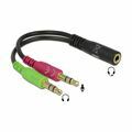 Delock AUX adapter za 4-pinski kombo audio+mikrofon vmesnik v dva 3-pinska stereo jack vmesnika. Omogoča priklop slušalk z mikrofonom in 4-pinskim vmesnikom na računalnik z ločenim vhodom za slušalke in mikrofon.