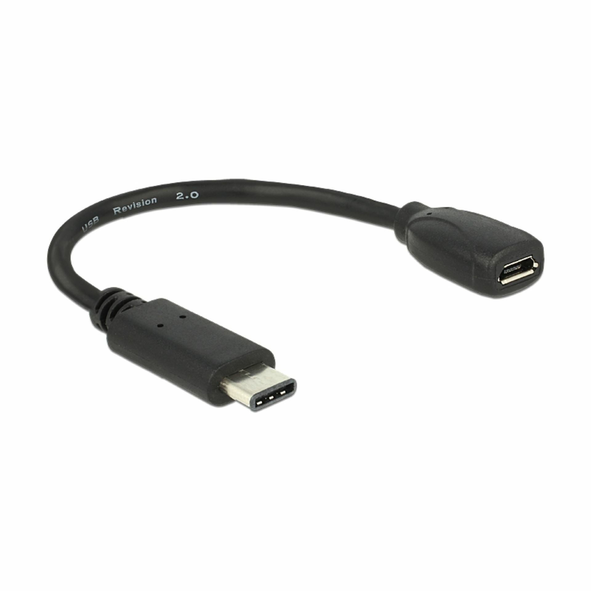 Delock adapter za pretvorbo USB 2.0 tip C priključka v USB 2.0 tip mikro B ženski.