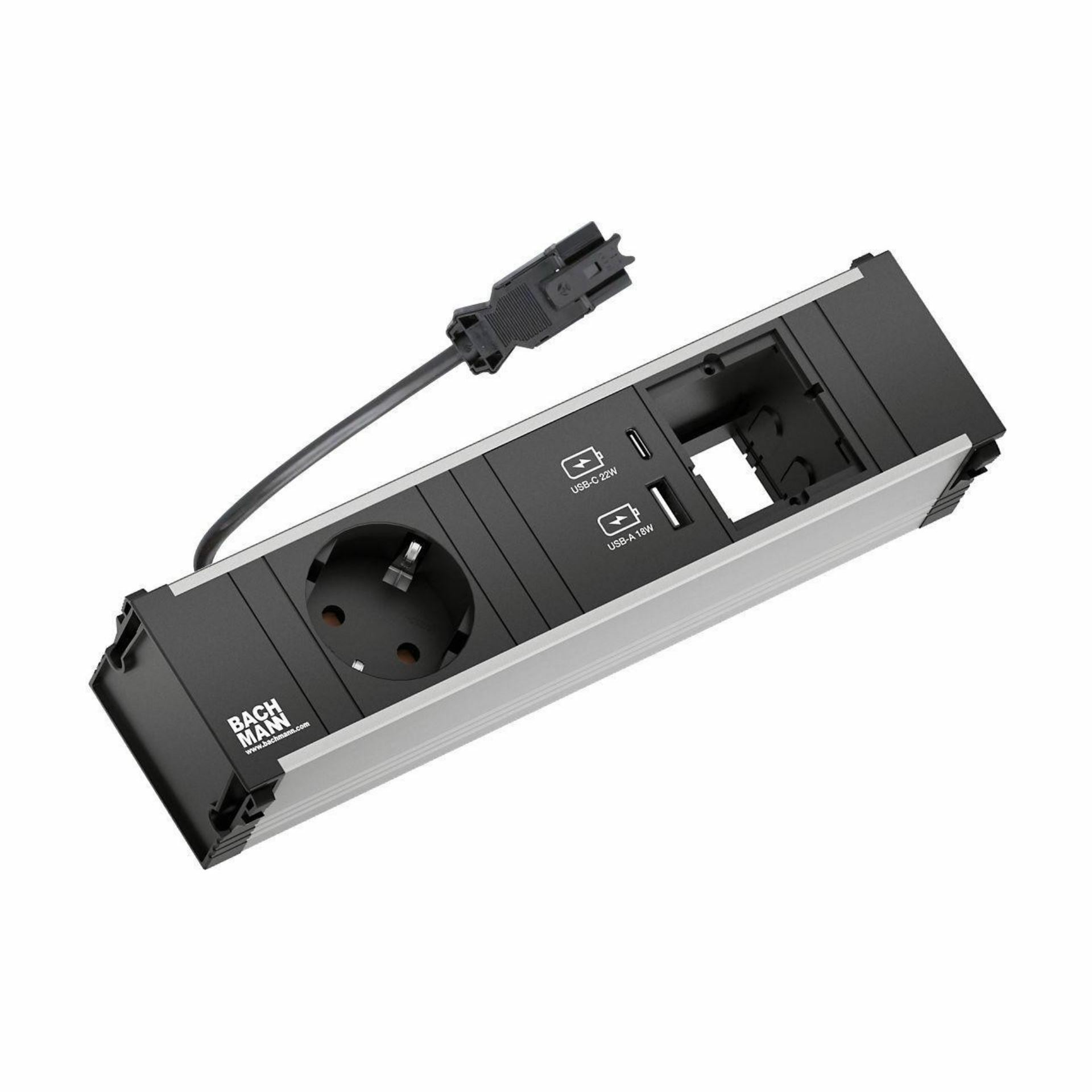 Bachmann visoko kvalitetni razdelilec 1x220V 1xUSB A-18W/C-22W za vgradnjo v mizo, idealna rešitev za pisarne in sejne sobe, za montažo v CONI 217mm vgradna ohišja,.
