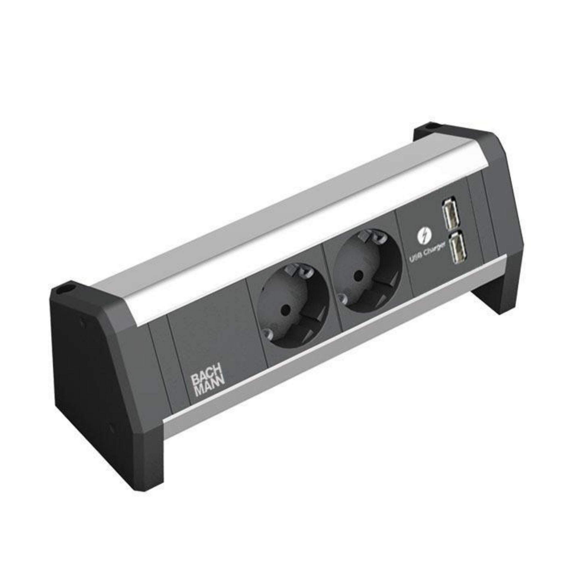 Bachmann visoko kvaliteten razdelilec 2x220V za montažo na mizo, idealna rešitev za pisarne in sejne sobe.