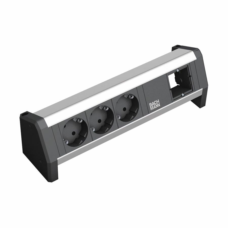 Bachmann visoko kvaliteten razdelilec 3x220V za montažo na mizo, idealna rešitev za pisarne in sejne sobe.