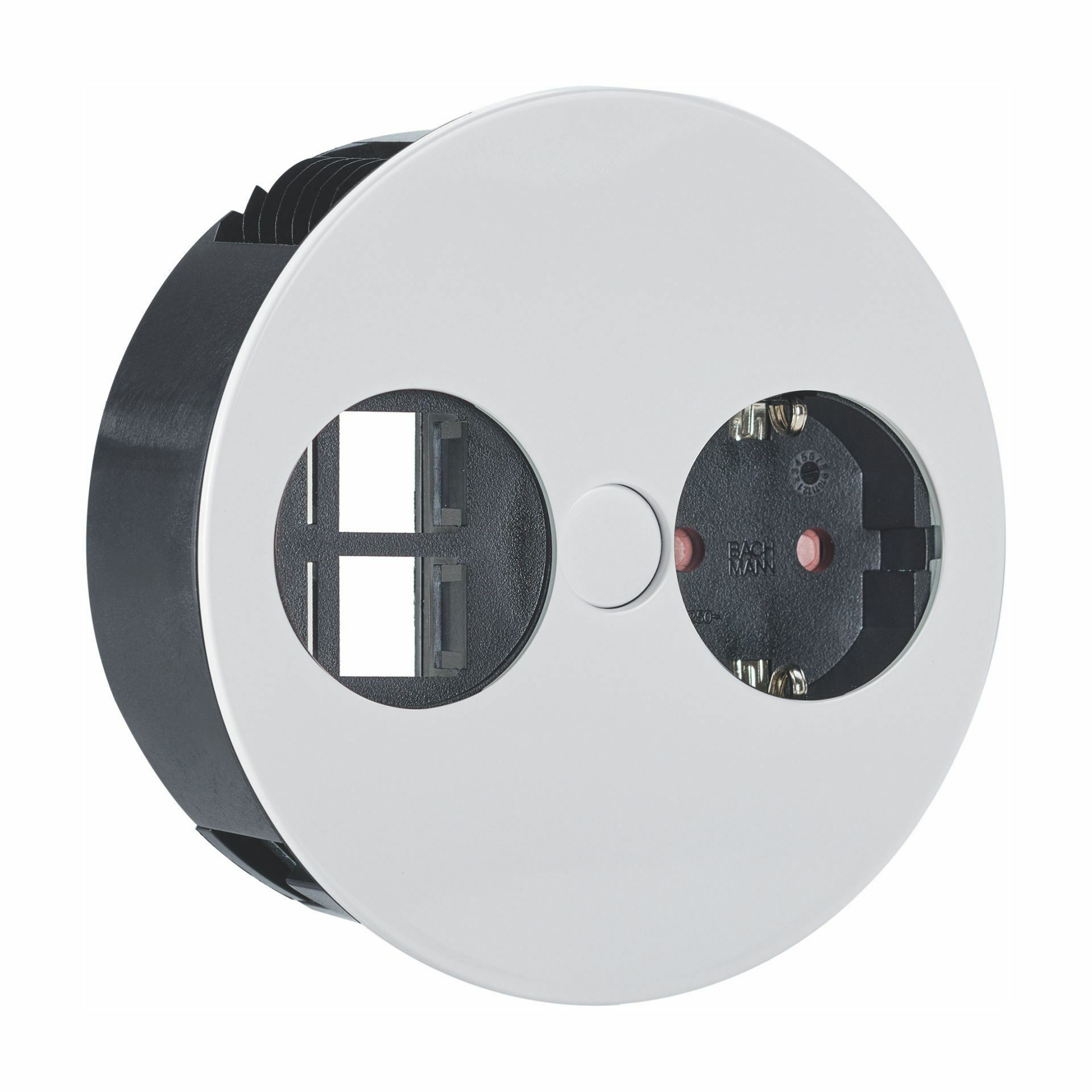 Bachmann visoko kvalitetna vgradna vtičnica TWIST mat bele barve, idealna rešitev za kuhinje, kot tudi za pisarne in sejne sobe.