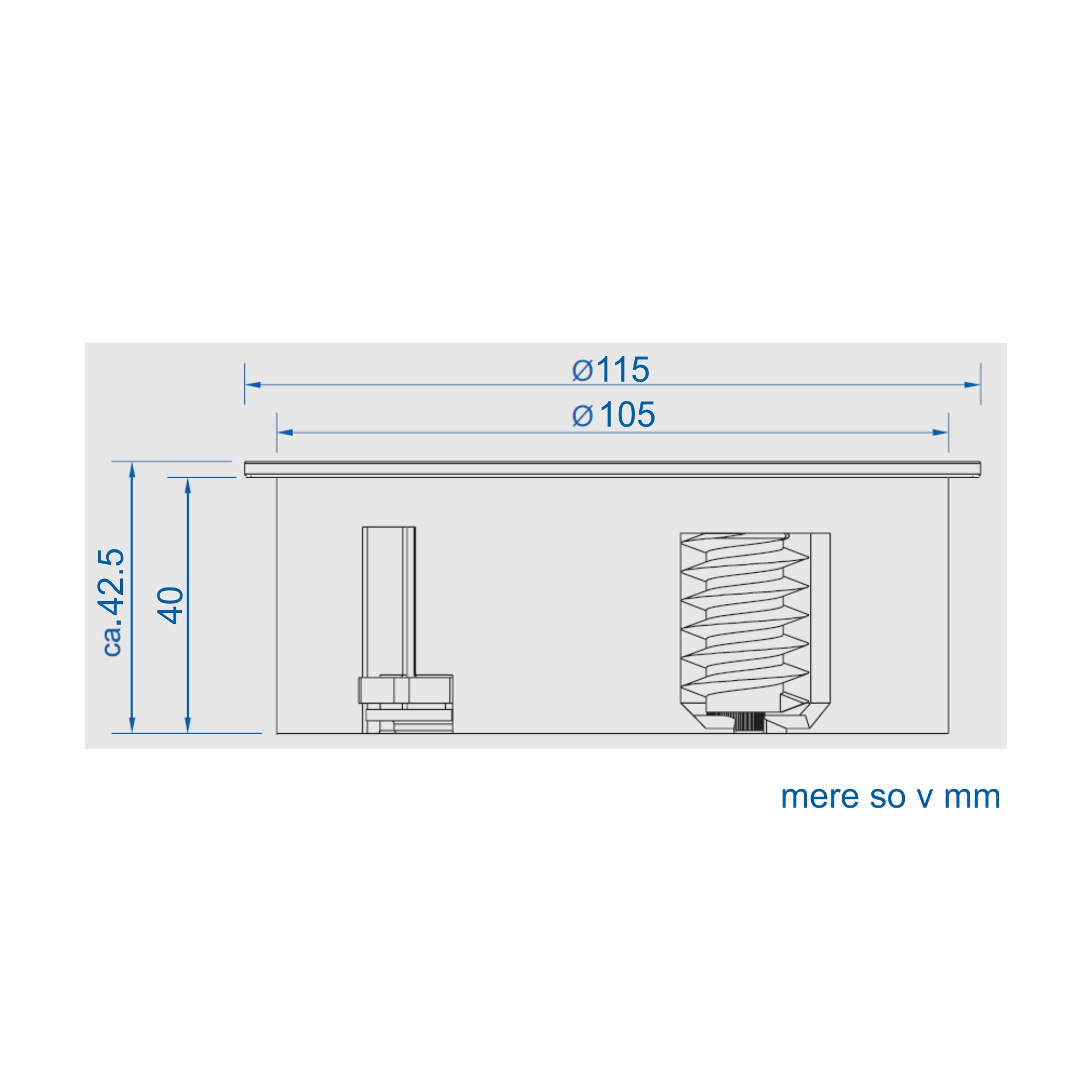 Montaža v luknjo premera 105(+1)mm, skupni premer na zgorni strani 115mm