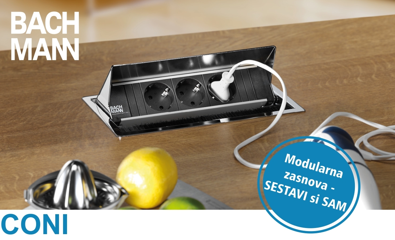 Ko je vtičnica zaprta, površina pohištva in CONI tvorita enakomerno površino. Če so potrebne napajalne ali podatkovne povezave, lahko CONI odprete, vstavite želene vtiče in CONI nato znova zaprete. Vgrajen krtačni vložek preprečuje zagozditev kablov. S CONI se lahko sami odločite, kako bodo konfigurirane vtičnice, saj je razdelilnik mogoče hitro zamenjati brez orodja. Integrirana funkcionalnost in prilagodljivost ne le za danes, ampak tudi za razvoj prihodnosti. Ker je CONI modularno zasnovan si poljubno lahko izbirate vgrajene module, ki jih seveda lahko tudi zamenjate.