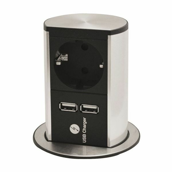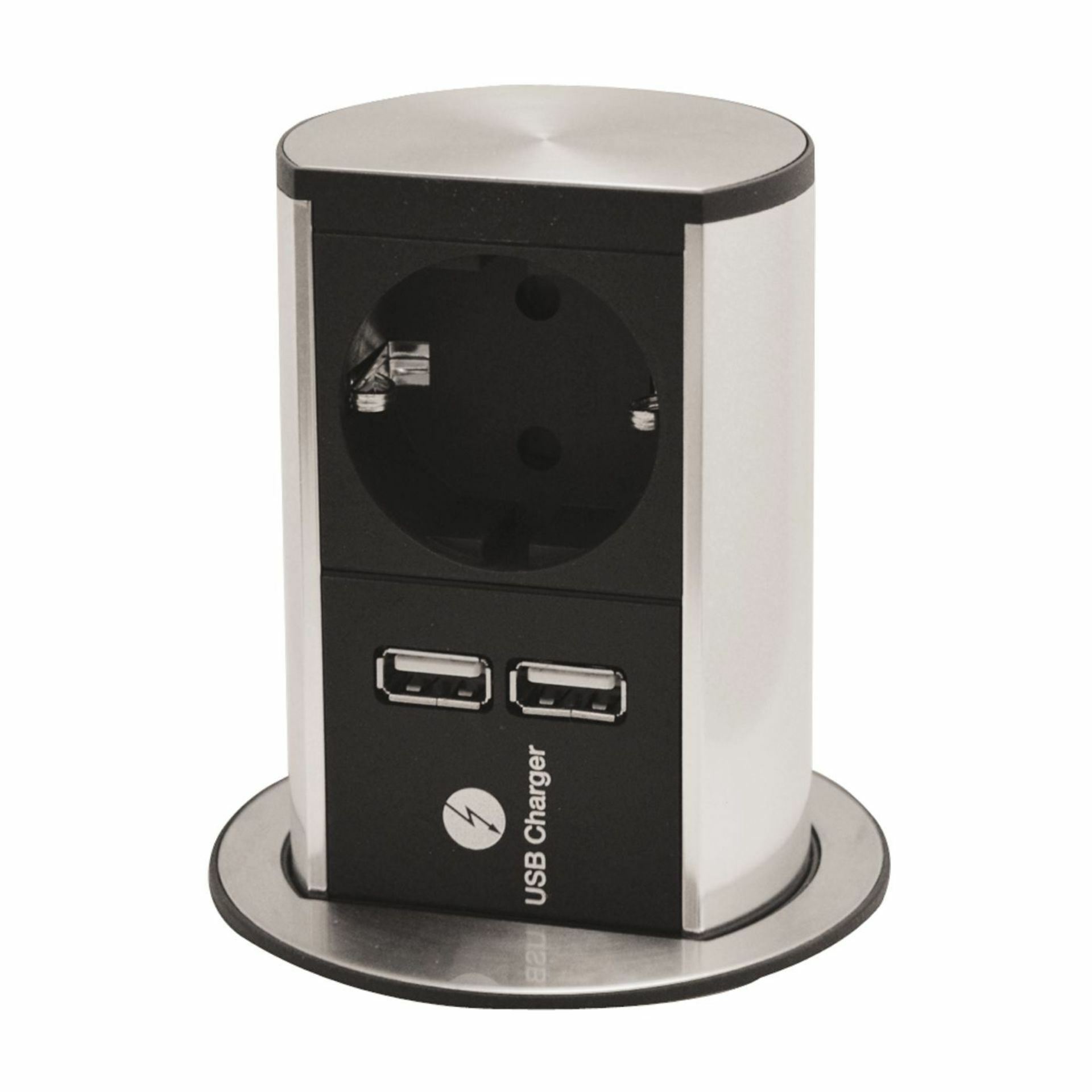 Bachmann visoko kvaliteten potopni stebriček ELEVATOR 928.020 1x240V, 2x USB, idealna rešitev za kuhinje, pisarne in sejne sobe, enostavna in hitra montaža.