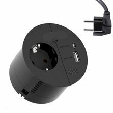 Bachmann univerzalni razdelilec linije Connect Line s stikalom in dodatnima priklopoma za polnjenje USB TipA in TipC naprav.