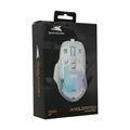 Igralna miška bele barve Baracuda BGM-062 Anglerfish ponuja kombinacijo natančnosti in vzdržljivosti z optičnim senzorjem 7200 DPI in stikali HUANO. 7 nastavljivih tipk, prilagodljiva osvetlitev RGB in 1,5-metrski pleteni kabel zagotavlja zanesljivost, medtem ko ergonomska oblika in teža 110 g zagotavljata udobje med daljšimi igralnimi sejami.