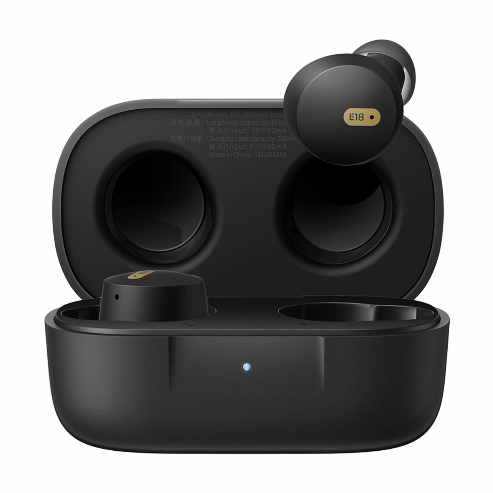Paket vsebuje: 1x Baseus slušalke Bowie E18 črne bluetooth, 1x Polnilni kabel USB TipA-C, 2x Set nadomestnih čepkov, 1x Navodila