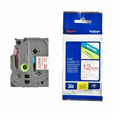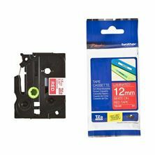 Kakovostni laminiran TZe Brother trak, širine 12mm in skupne dolžine 8m. Trak je rdeče barve in omogoča potisk v beli barvi