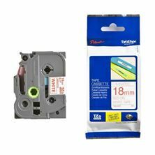 Kakovostni laminiran TZe Brother trak, širine 18mm in skupne dolžine 8m. Trak je bele barve in omogoča potisk v rdeči barvi…