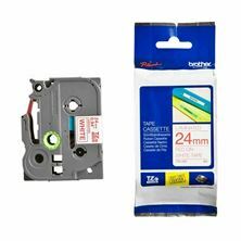 Kakovostni laminiran TZe Brother trak, širine 24mm in skupne dolžine 8m. Trak je bele barve in omogoča potisk v rdeči barvi…