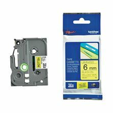 Kakovostni laminiran TZe Brother trak, širine 6mm in skupne dolžine 8m. Trak je rumene barve in omogoča potisk v črni barvi…