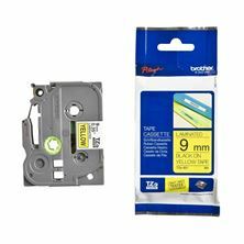Kakovostni laminiran TZe Brother trak, širine 9mm in skupne dolžine 8m. Trak je rumene barve in omogoča potisk v črni barvi…