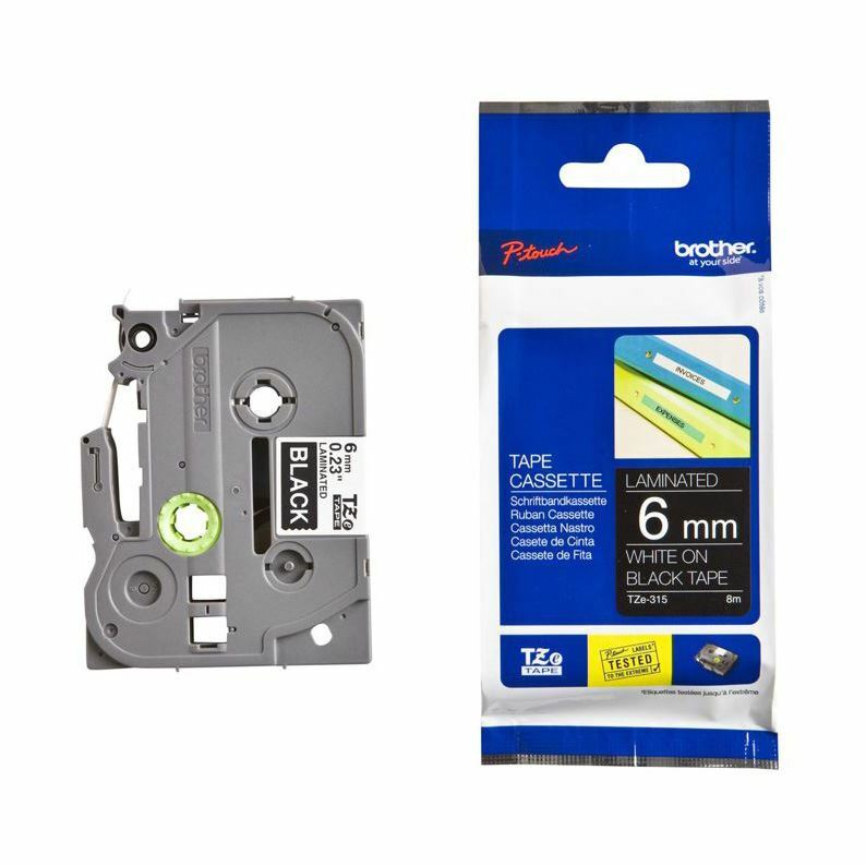 Kakovostni laminiran TZe Brother trak, širine 6mm in skupne dolžine 8m. Trak je črne barve in omogoča potisk v belimi barvi…