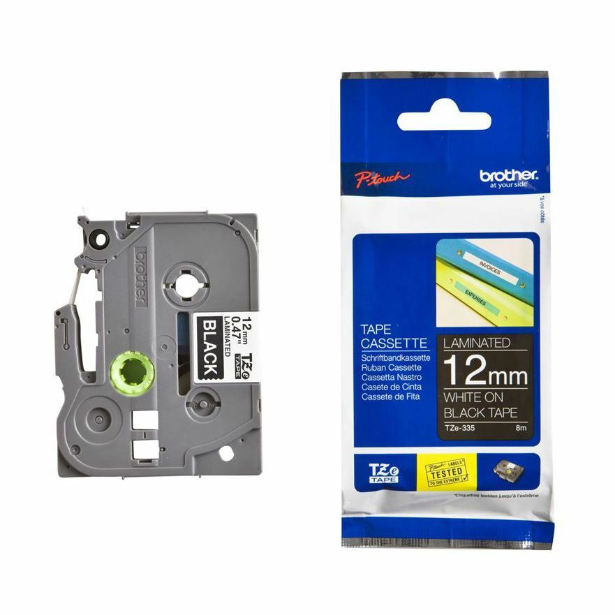 Kakovostni laminiran TZe Brother trak, širine 12mm in skupne dolžine 8m. Trak je črne barve in omogoča potisk v beli barvi…
