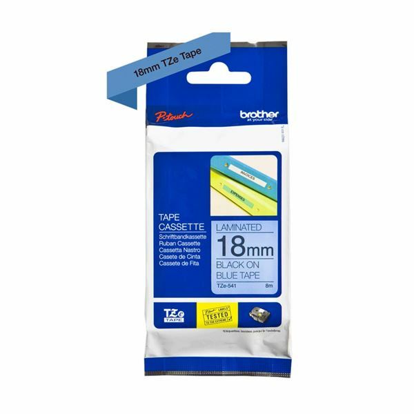 Kaseta z laminiranim trakom za označevanje TZe-541, združljiva s široko paleto Brotherjevih tiskalnikov P-touch, je še posebej vsestranska zaradi lahko berljive kombinacije črne in modre barve.