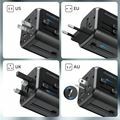Choetech Travel charger omogoča prilagajanje standardom ZDA, EU, UK, AU. Izdelan je z GaN tehnologijo, zato je polnjenje kljub kompaktni velikosti hitro in učinkovito.