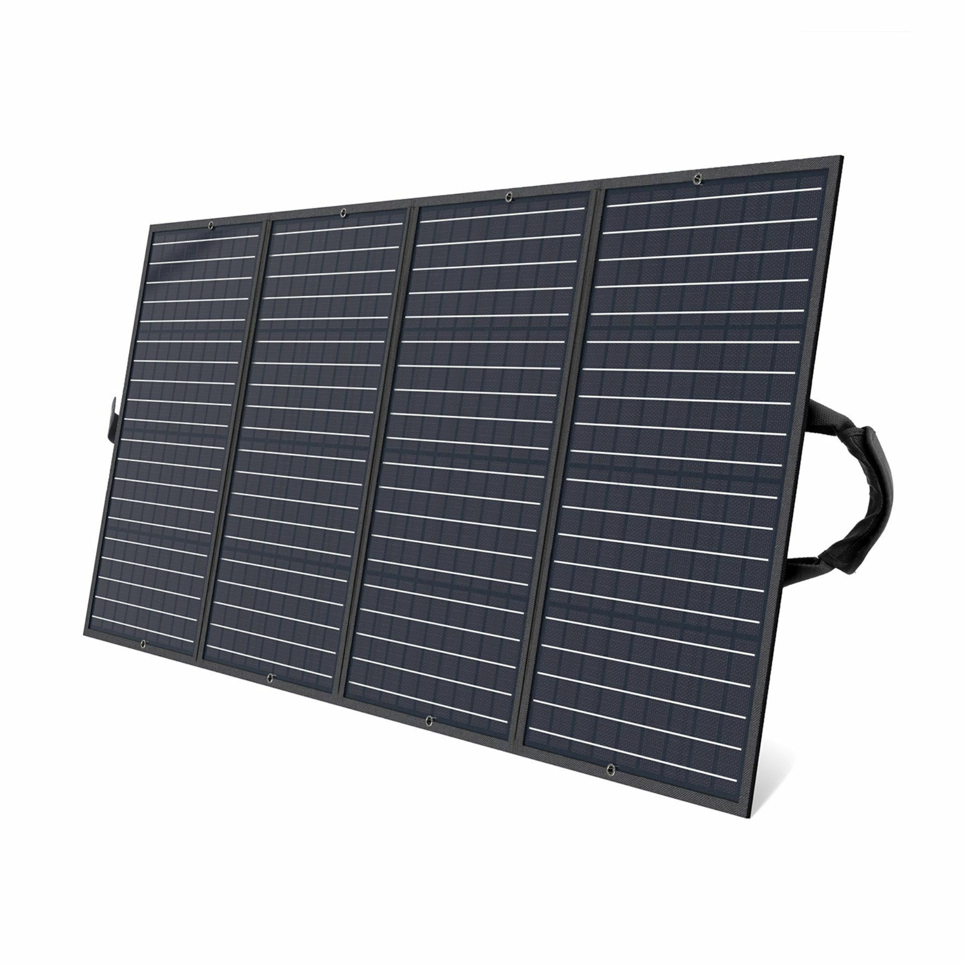 Paket vsebuje: 1x SC010 solarni panel 160W, 1x Adapterski kabli 2-v-1 MC4, 1x Anderson kabel 4v1, 3x USB priključki 1x Stojalo 1x Navodila
