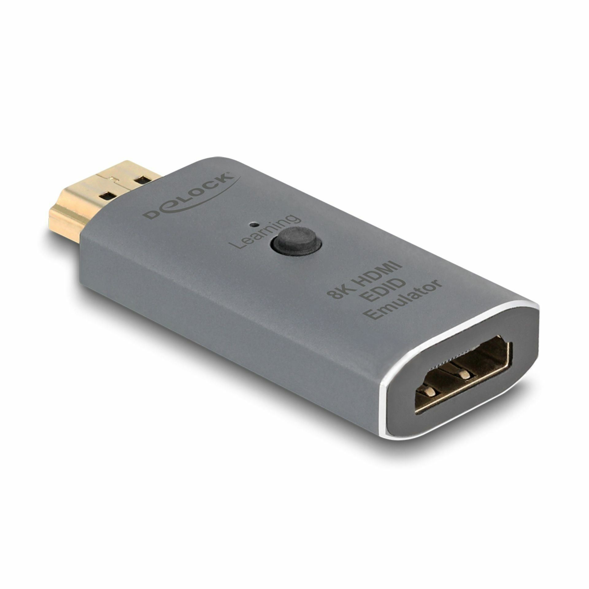 Delock HDMI M–HDMI Ž 8K EDID Emulator 64324 omogoča emulacijo monitorja, tako da vir signala ohrani prikaz in ločljivost tudi brez povezanega zaslona. Adapter vsebuje standardni nabor EDID/DDC podatkov, hkrati pa lahko prebere in shrani podatke priključenega monitorja. Namenjen je zagotavljanju stabilnega signala pri uporabi HDMI razdelilnikov, podaljševalnikov ali drugih AV naprav.