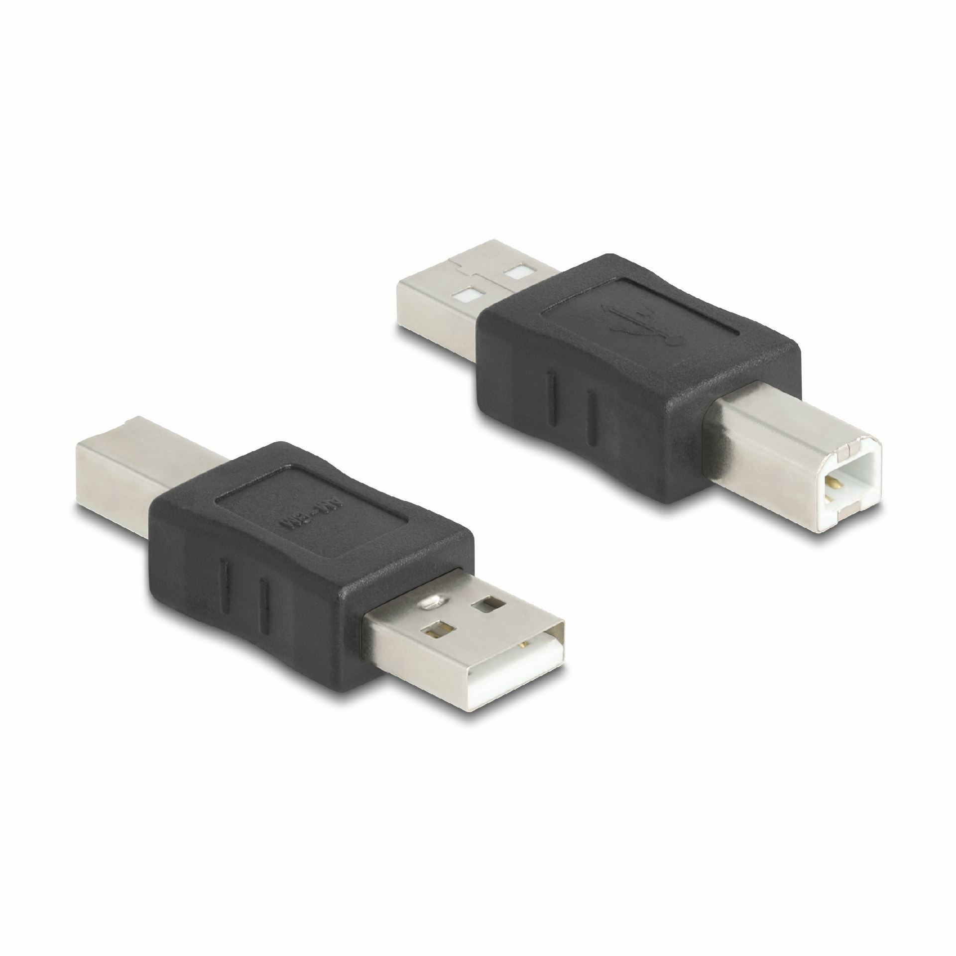 Delock USB 2.0 adapter omogoča pretvorbo ženskega USB priključka tipa A v moški priključek tipa B ali obratno.