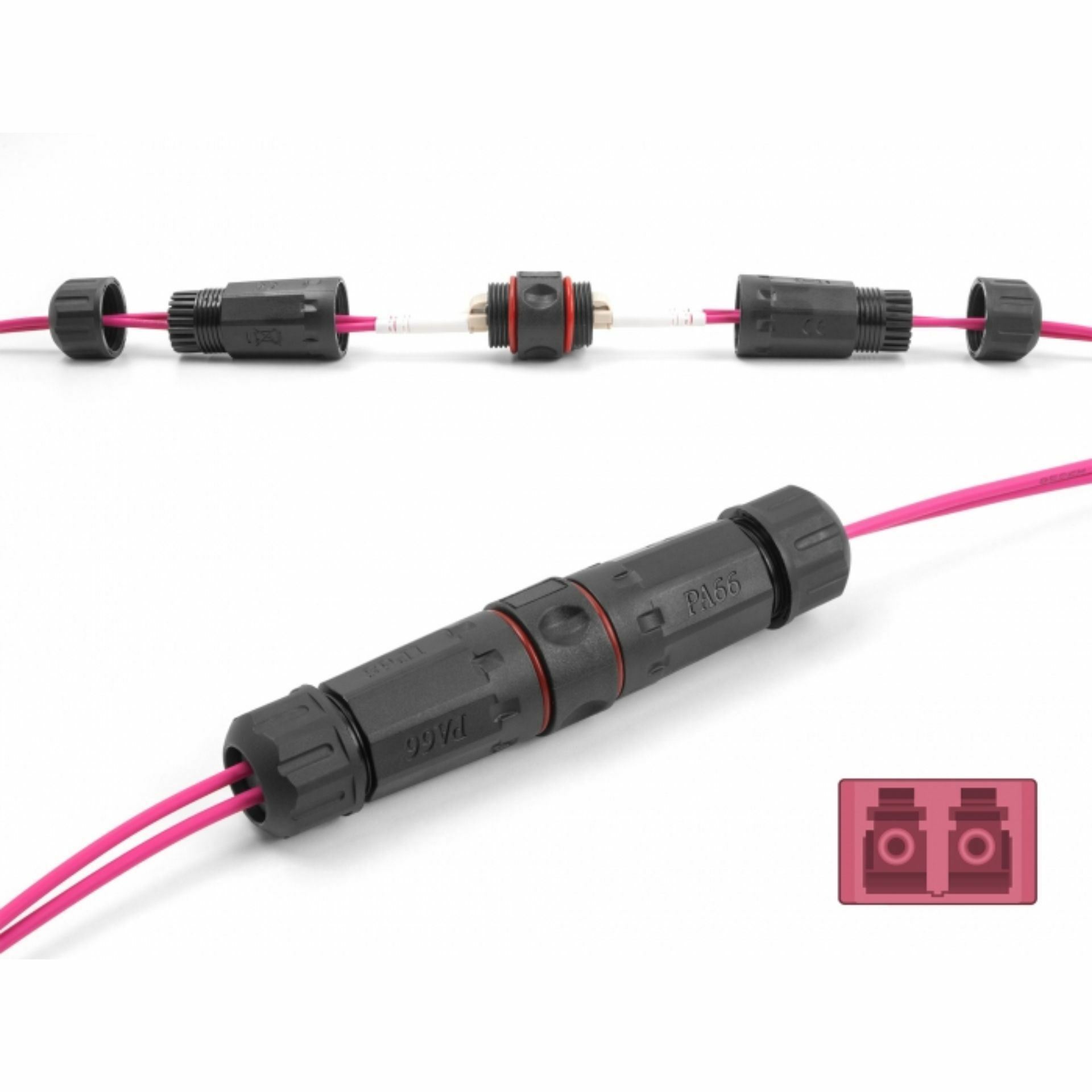 Delock optični i člen povezuje dva kabla iz optičnih vlaken skupaj in je idealen za uporabo na prostem. I člen nudi večjo zaščito pred umazanijo in vlago za povezavo optičnih kablov. Odporen je proti prahu in vodi IP68.