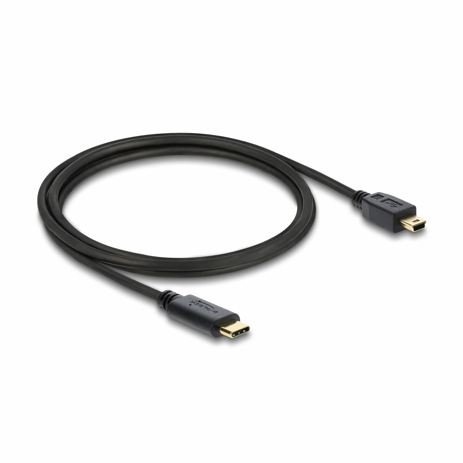 Delock USB 2.0 kabel USB TipC na USB Mini-B dolžine 1m v črni barvi. Namenjen povezavi naprav z Mini-B priključkom na računalnik z USB TipC izhodom. Podpira prenos do 480 Mbps in tok do 500 mA.