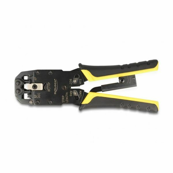 Z Delock kleščami je mogoče omrežni kabel hitro in enostavno namestiti v konektor, gumirani ročaji pa zagotavljajo trden oprijem med postopkom stiskanja.
