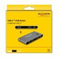 KVM stikalo Delock je priročna rešitev za povezavo dveh računalnikov z izhodom USB TipC DP Alt Mode na en HDMI in en DisplayPort monitor. Z gumbom lahko preklapljate med obema računalnikoma. Multi-Stream Transport (MST) podpira v sistemu Windows, da se priključeni monitorji upravljajo posamično in jih je mogoče združiti v en velik zaslon.