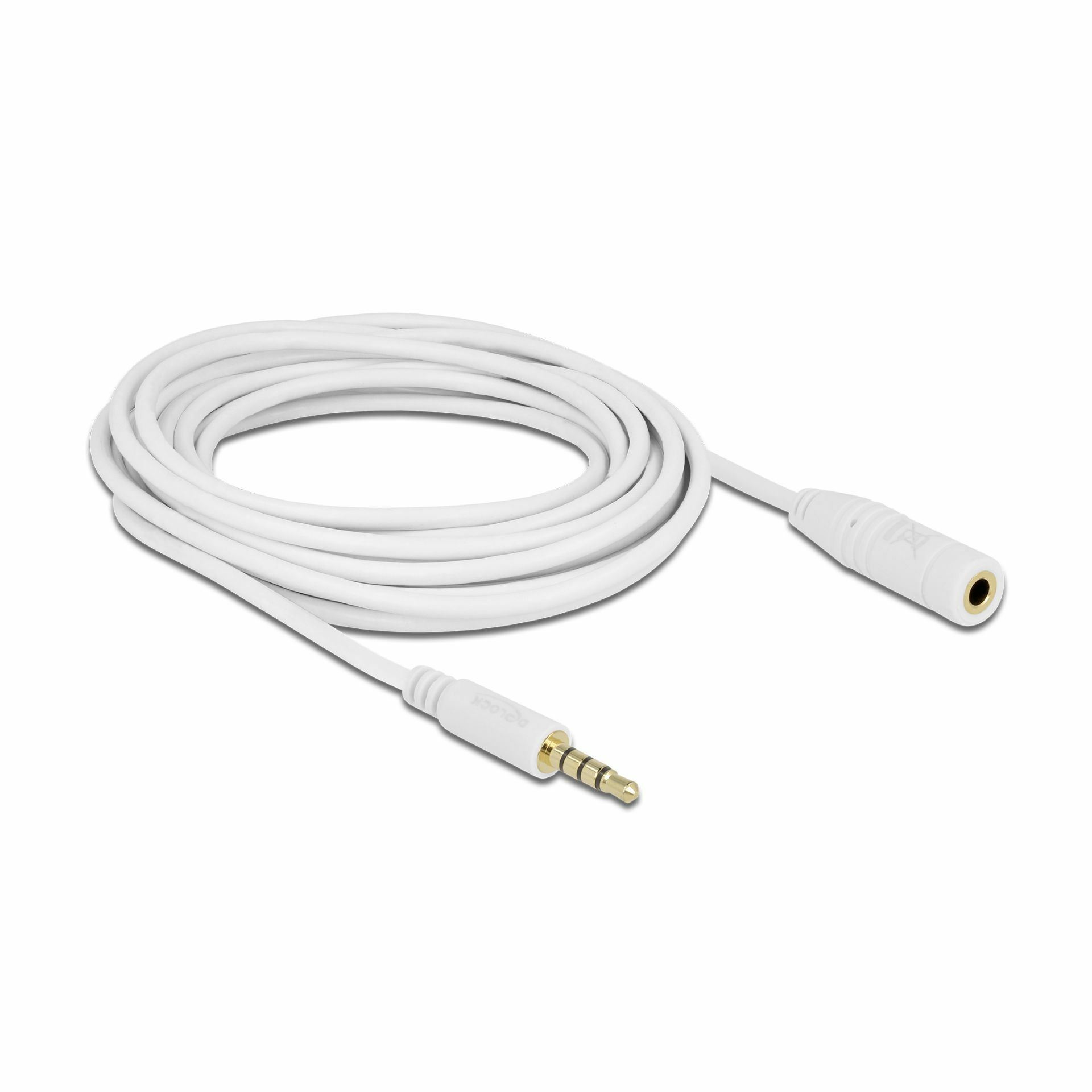Delock 84484 je 3.5 mm 4-polni avdio podaljšek dolžine 5m v beli barvi. Omogoča prenos stereo zvoka ter podporo mikrofonu prek 4-polnega CTIA priključka.