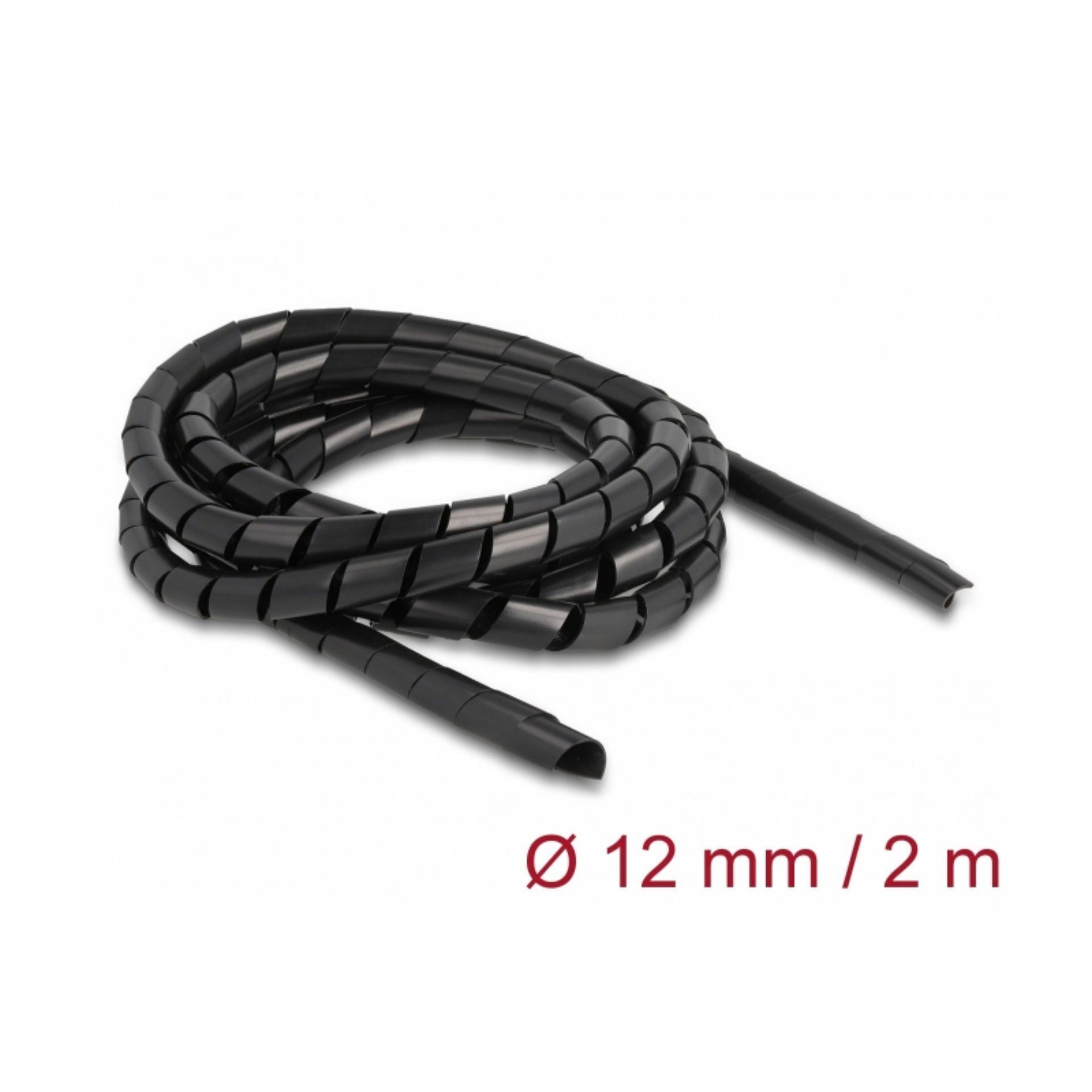 Delock plastična spenjalna cev za preprosto vpenjanje kablov, dolžine 2m, črne barve.