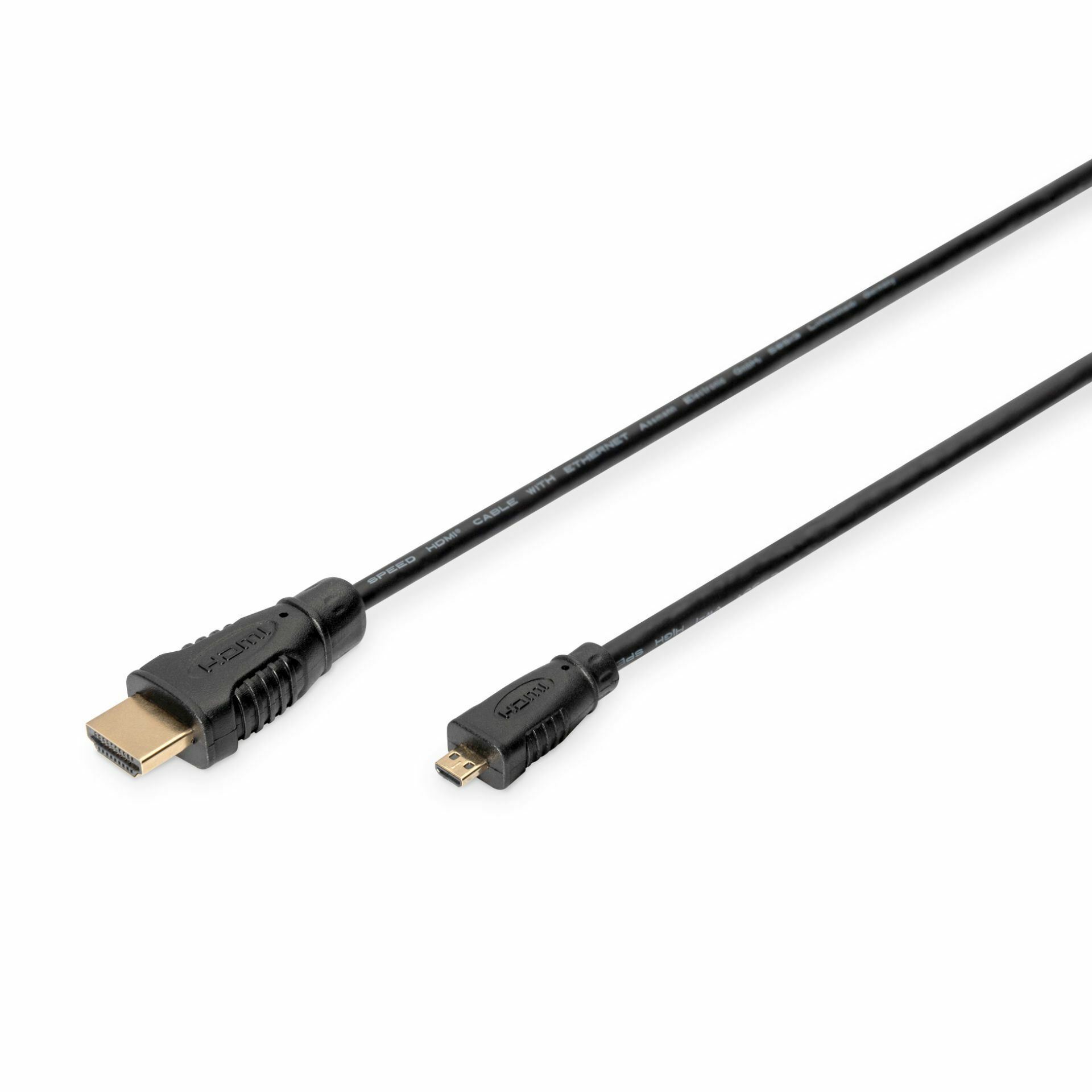 Digitus HDMI-HDMI mikro kabel (tip D) z mrežno povezavo, za priklop mobilnih naprav z mikro HDMI izhodom, primeren za 4K30Hz in 3D resolucije, dolžine 1m.