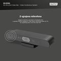 Digitus video konferenčni sistem DS-55580 združuje 4K kamero, mikrofon in zvočnik v eni napravi ter je primeren za manjše prostore. Uporablja umetno inteligenco za zoomiranje in kadriranje slike glede na število oseb. Sistem ne potrebuje dodatne programske opreme in je v celoti Plug and Play.