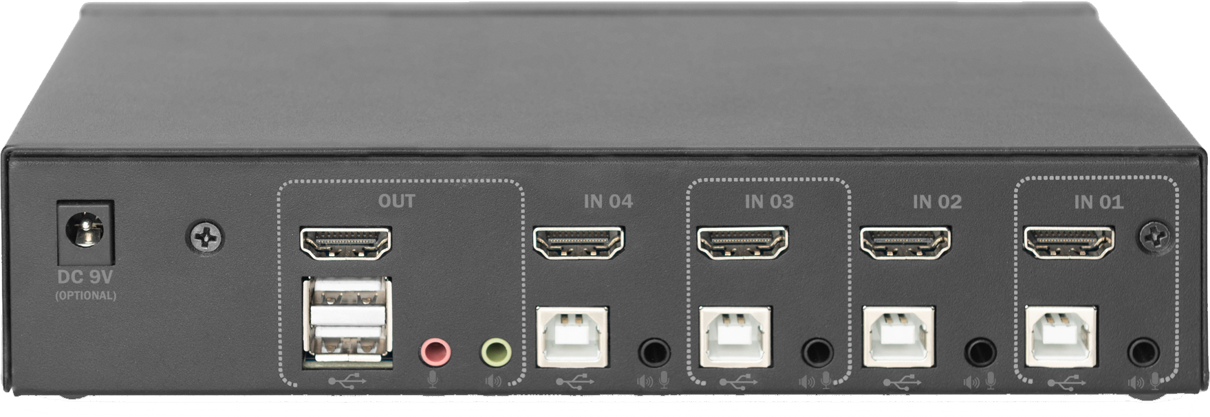 Z Digitus KVM stikalo 4x1 namizni HDMI/USB 4K DS-12880 upravljajte 4 osebne računalnike z enim zaslonom s kombinacijo tipkovnice in miške USB – preklapljajte med štirimi računalniki s pritiskom na gum