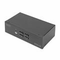 S 4-portnim KVM stikalom DIGITUS za dvojna zaslona lahko upravljate štiri osebne računalnike, združljive s 4k, z eno samo kombinacijo tipkovnice in miške USB. S pritiskom na gumb lahko udobno preklapljate med vsemi štirimi računalniki in tako prihranite ponovno priklapljanje vseh kablov. Izhod na do dva monitorja je zagotovljen prek dveh izhodov HDMI na zadnji strani. Prav tako lahko preklapljate med zvočnimi signali za mikrofon in zvočnik. Poleg tega je sprednji strani priklop USB za uporabo z drugimi perifernimi napravami, kot so ključki USB ali zunanji trdi diski na obeh računalnikih. Vsaka povezana periferna naprava je dodeljena aktivnemu osebnemu računalniku. LED lučke stanja na sprednji strani stikala vam ves čas prikazujejo trenutno konfiguracijo.