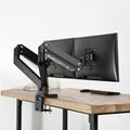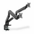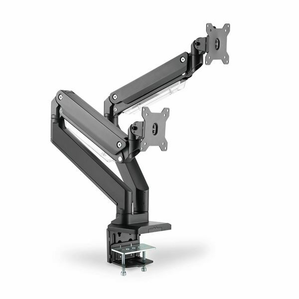 Digitus DA-90427 dvojni nosilec za monitorja s plinskimi vzmetmi omogoča individualno postavitev dveh zaslonov do velikosti 35 palcev, z največjo obremenitvijo 15 kg na monitor. Nosilce je mogoče obračati, nagibati in zasukati, pri tem pa uporabljati integrirane plinske vzmeti za enostavno prilagajanje višine. Hitra funkcija sprostitve omogoča enostavno nastavitev. Popolnoma prilagojena ergonomska postavitev monitorjev za udobno uporabo pri vseh višinah.