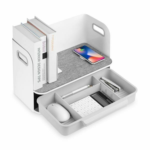 Priročen namizni organizator s polnilnikom Qi za polnjenje mobilnih naprav.