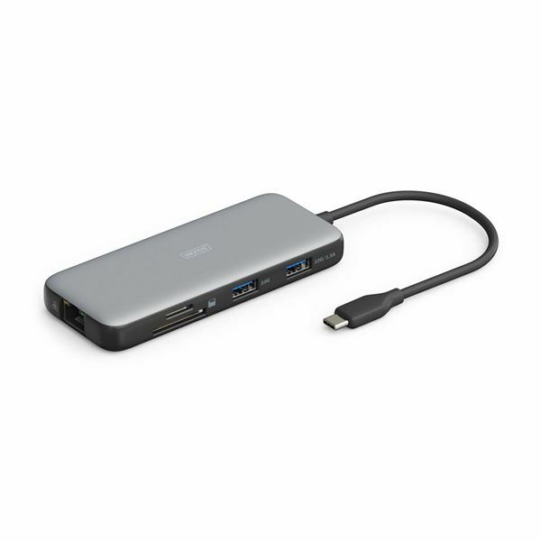 Digitus 7v1 priklopna postaja DA-70914 razširi možnosti vaše naprave. Ponuja 4K/60Hz HDMI izhod, čitalec kartic, dva USB-A 3.2 Gen 2 za hiter prenos podatkov, Gigabit Ethernet za zanesljivo povezavo in USB-C PD za hitro polnjenje prenosnika. Vse, kar potrebujete za nemoteno delo.