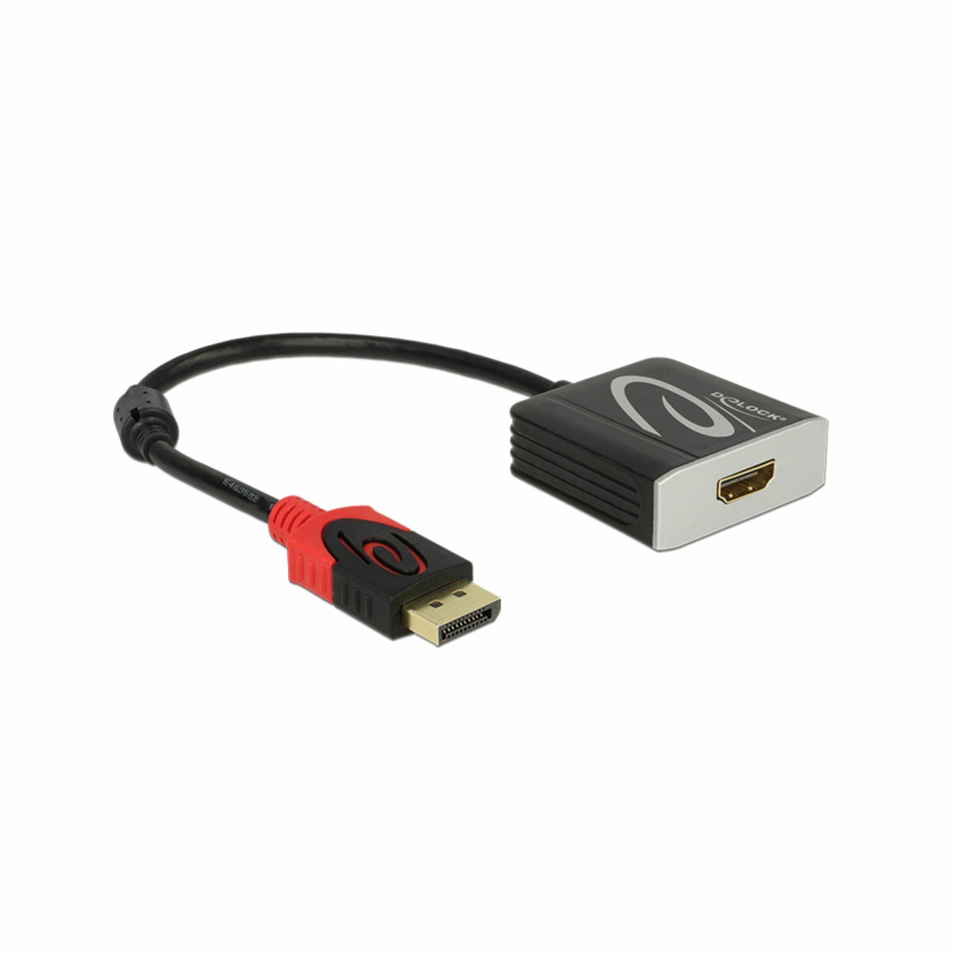 Delock adapter omogoča priključitev HDMI monitorja na sistem preko DisplayPort vmesnika. Adapter podpira ločljivosti do 4K Ultra HD @ 60Hz in je povratno združljiv z Full-HD 1080p.