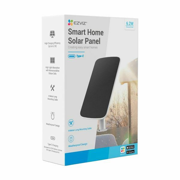 S solarnim panelom EZVIZ lahko brezskrbno uporabljate vaše baterijske zunanje kamere, saj ga napaja sončna energija. Panel je izdelan iz vrhunskih materialov in je odporen na vse vremenske vplive, zato ga lahko postavite kjerkoli na domu, vašem dvorišču ali vrtu.
