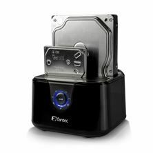Fantec DS-X1U3-Gloss priklopna postaja za 2,5 in 3,5 palčne SATA trde diske in SSD. Povezava prek USB 3.2 Gen 1 do 5 Gbit/s, enostavna uporaba brez orodja, LED indikatorji ter črno ohišje iz plastike z visok sijajem.