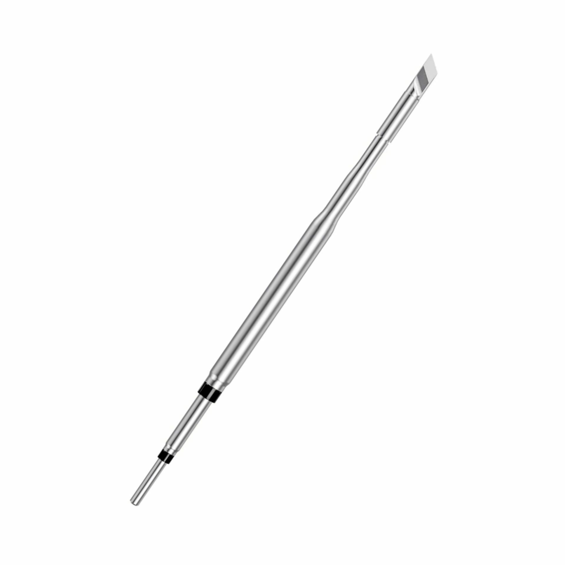 Fnirsi konica F210 HS02B-K chisel tip je združljiva s spajkalnikom FNIRSI HS-02B in drugimi spajkalniki s priključkom F210. Ravel del omogoča natančno spajkanje večjih površin, konica špice pa detajlno delo.