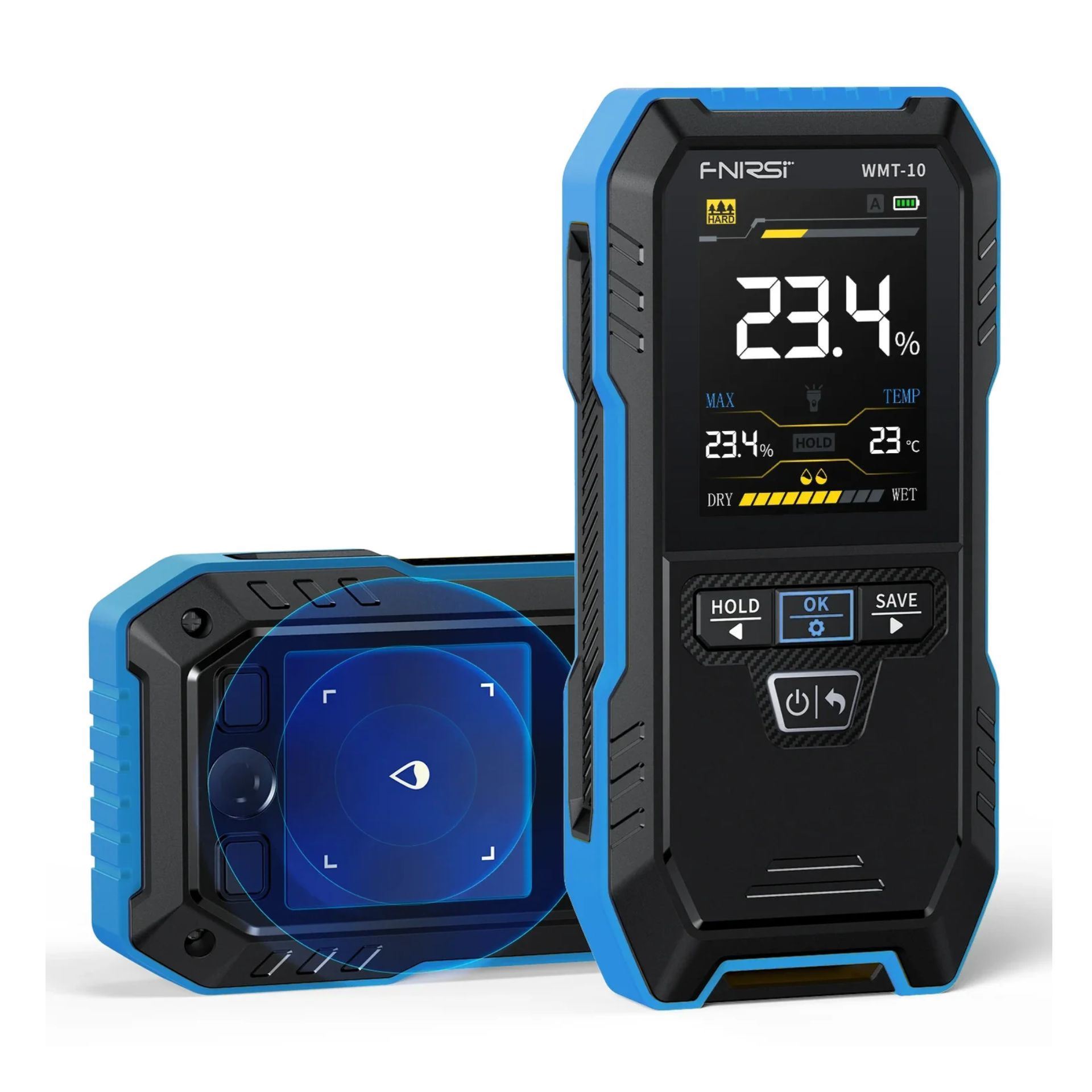 FNIRSI WMT-10 je napreden, neinvaziven merilec vlage, ki omogoča hitro in natančno zaznavo brez prebijanja površine. Indukcijska tehnologija z visoko občutljivim elektromagnetnim senzorjem omogoča merjenje različnih materialov – od lesa do gradbenih površin, ometa in betona.