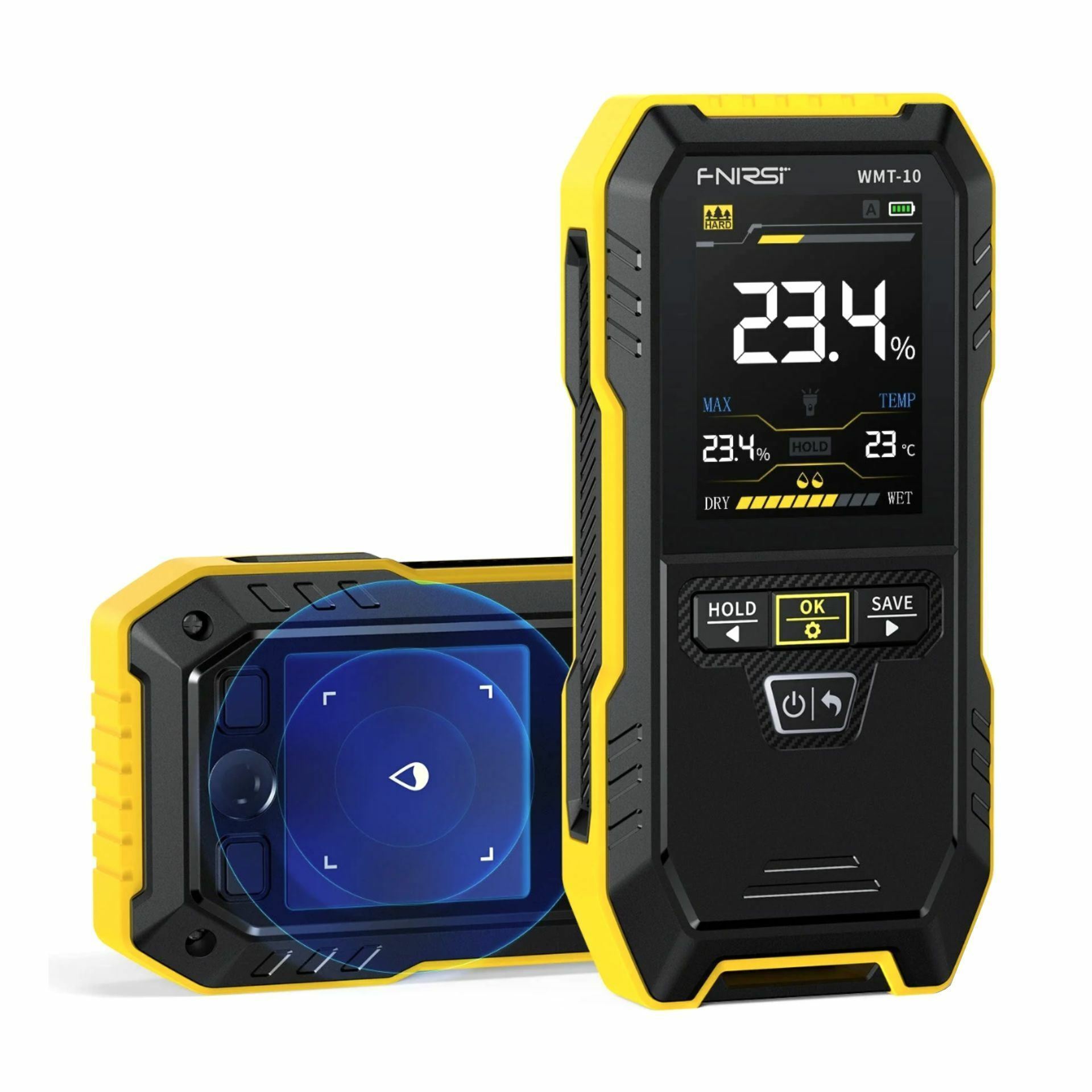 FNIRSI WMT-10 je napreden, neinvaziven merilec vlage, ki omogoča hitro in natančno zaznavo brez prebijanja površine. Indukcijska tehnologija z visoko občutljivim elektromagnetnim senzorjem omogoča merjenje različnih materialov – od lesa do gradbenih površin, ometa in betona.
