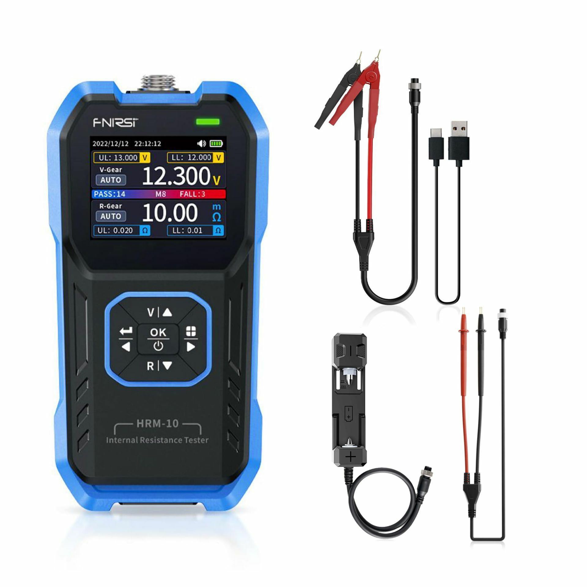 FNIRSI HRM-10 je ročni merilnik notranje upornosti baterij z merjenjem napetosti do 100 V DC in upornosti do 200 Ω. Namenjen je preverjanju stanja baterij v različnih sistemih ter omogoča razvrščanje, shranjevanje zgodovine meritev in izvoz podatkov.