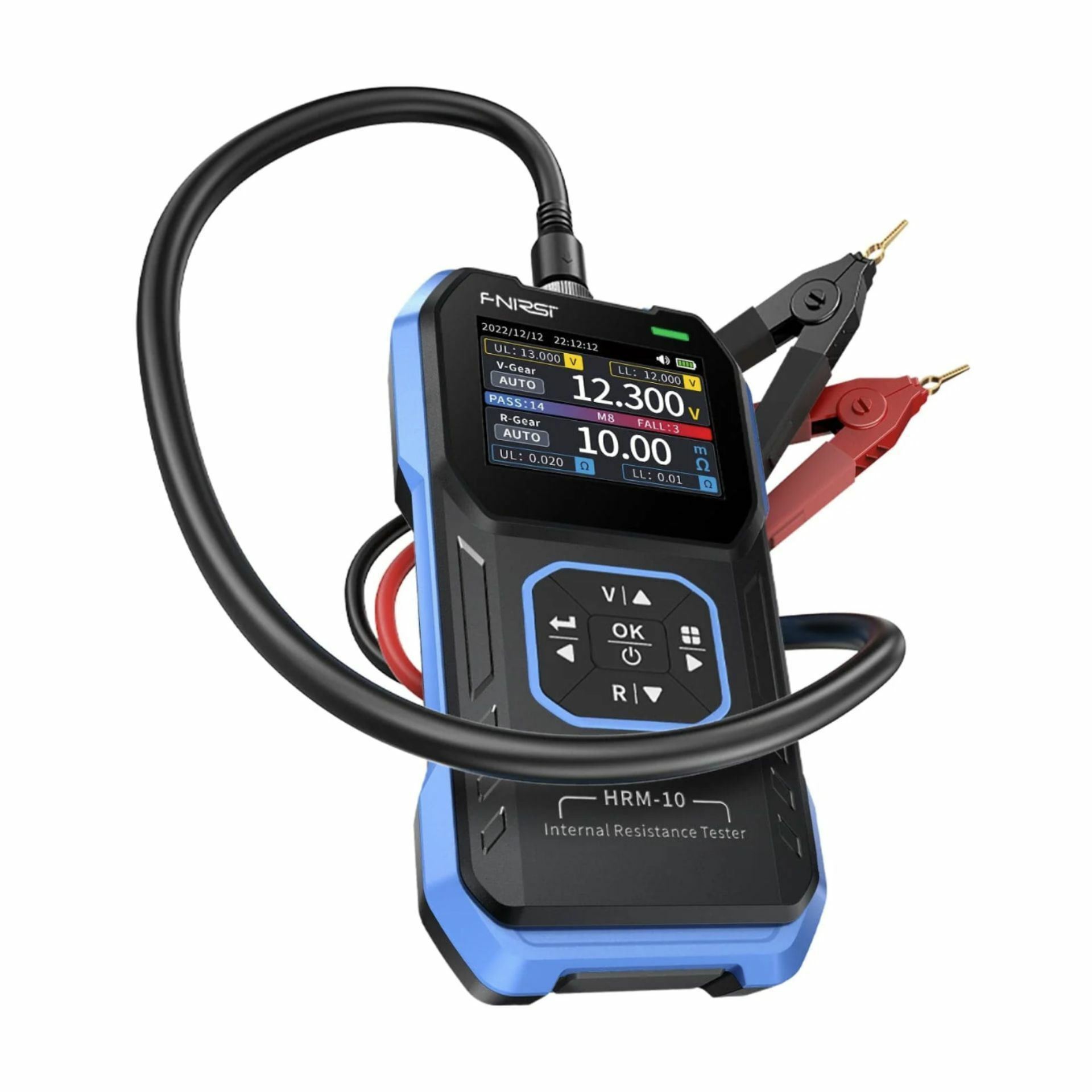FNIRSI HRM-10 je ročni merilnik notranje upornosti baterij z merjenjem napetosti do 100 V DC in upornosti do 200 Ω. Namenjen je preverjanju stanja baterij v različnih sistemih ter omogoča razvrščanje, shranjevanje zgodovine meritev in izvoz podatkov.