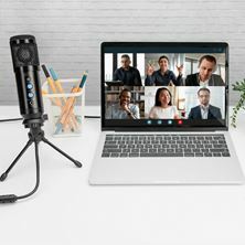 Digitus Mikrofon USB kondenzatorski s stojalom za profesionalno snemanje kvalitetnih Podcast in Streaming vsebin. Ima priključni USB kabel dolžine 1,5m ter stereo izhod 3.5mm, ki se nahaja na mikrofonu za lažji dostop. Mikrofon ima še gumb za izklop zvoka, glasnost zvoka ter glasnost slušalk. Podpira usmerjeno snemanje s kardioidnimi značilnostmi ter ponuja visoke ločljivosti zvoka (192kHz/24Bit). Mikrofonova roka je narejena iz kovine in je nastavljiva ter enostavna za uporabo. Vsebuje tudi namizno objemko, ki ponuja dodatno moč in stabilnost.