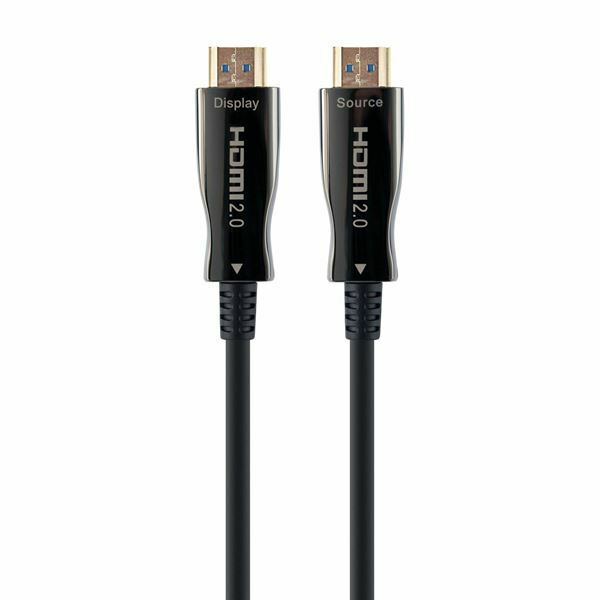 Cablexpert hibridni optični HDMI AOC kabel dolžine 10m uporablja tehnologijo optičnih vlaken in zmanjšuje tveganje EMI/RFI v okoljih z visokimi motnjami. Vzdržljiv tanek pleten kabel vrhunske kakovosti z elegantnimi kovinskimi priključki, podpira ločljivosti 4K pri 60Hz.