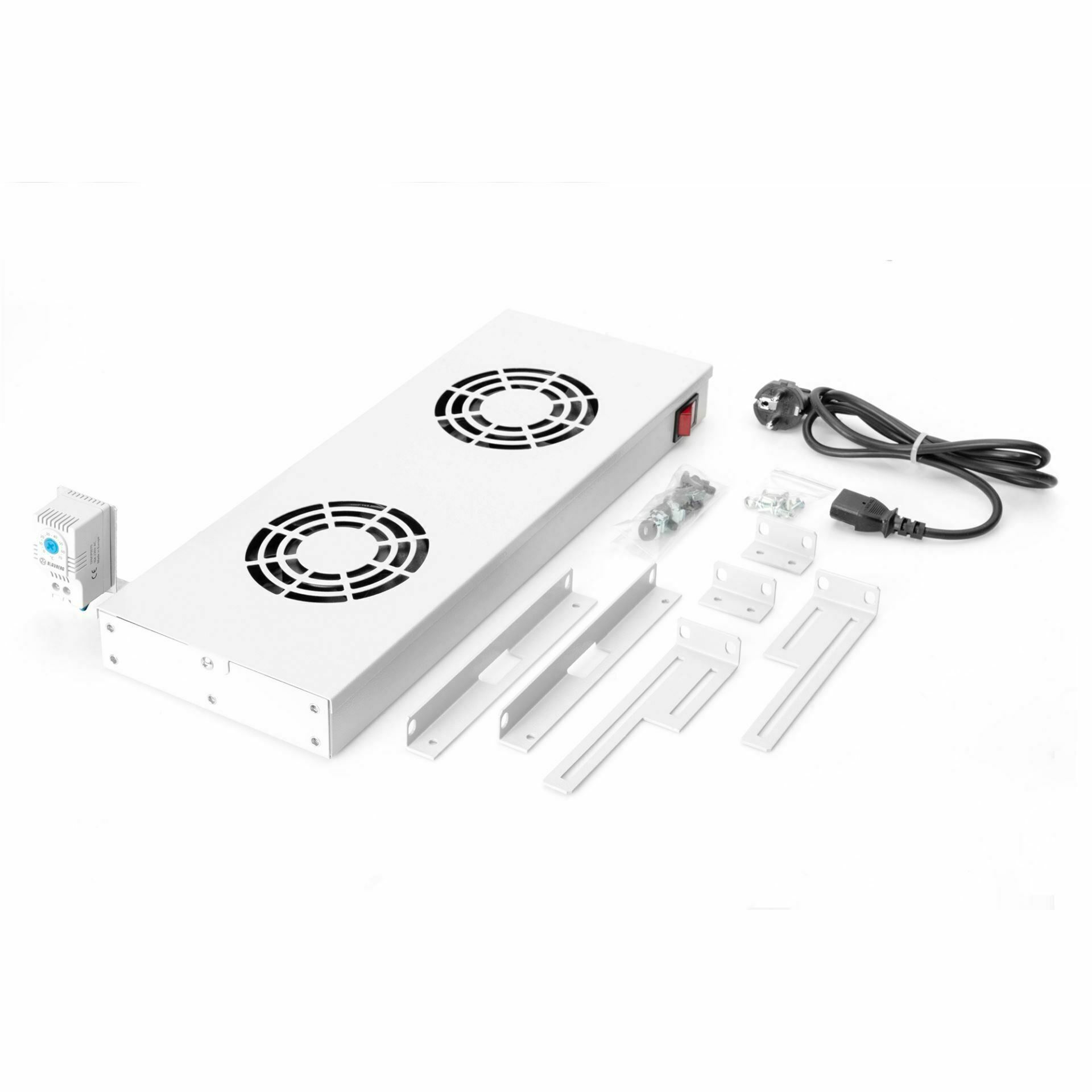 Prezračevalne enote je mogoče spremenljivo namestiti v 483 mm (19") velike omarice. Vsak ventilator je opremljena z dvema kompletoma montažnih nosilcev. S standardnim kompletom lahko svoj ventilator namestite v poljubno visok prostor vaše omrežne ali strežniške omare. Drugi komplet nosilcev omogoča montažo ventilatorja na vrh 483 mm (19") omrežnih ali strežniških omar serije varioFLEX. Stikalo in nastavljiv termostat nudita možnosti za prilagajanje.